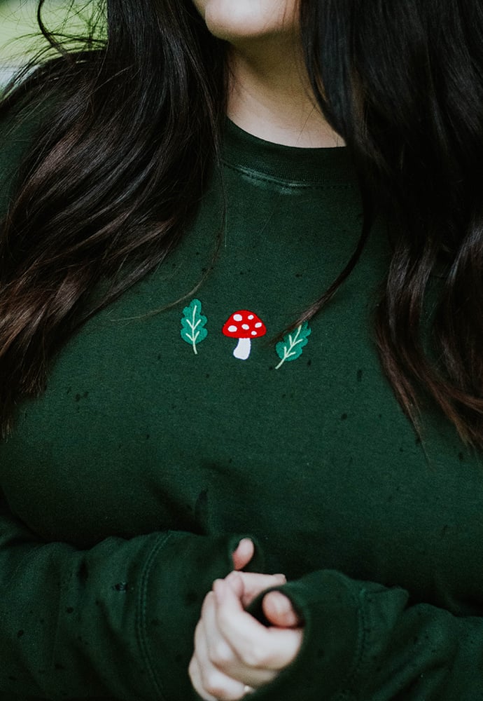 Mushi & Oak Embroidered Sweatshirt ~ Forest Green